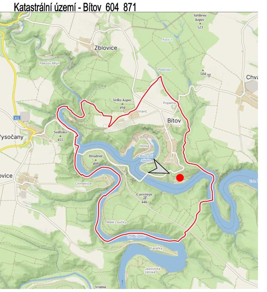 Chata se nachází na pozemku obce Bítov (s ročním nájmem za pozemek).