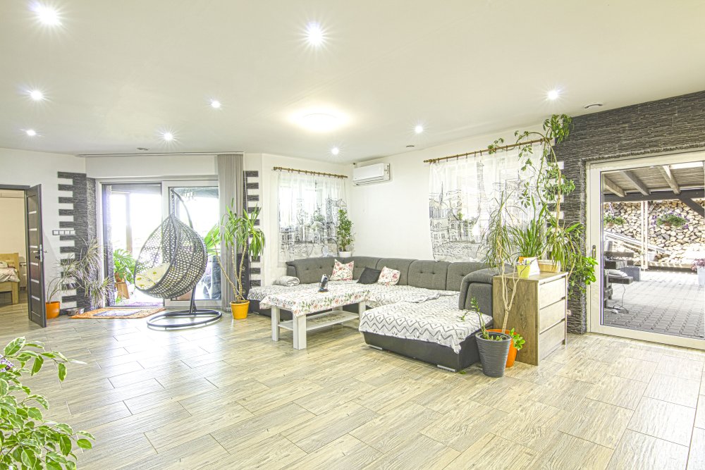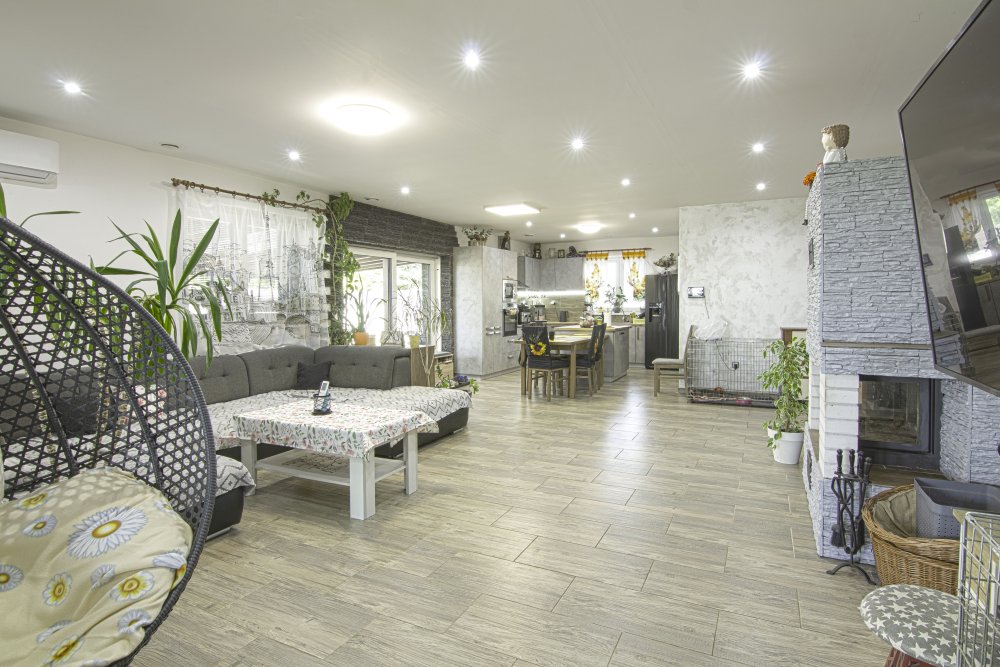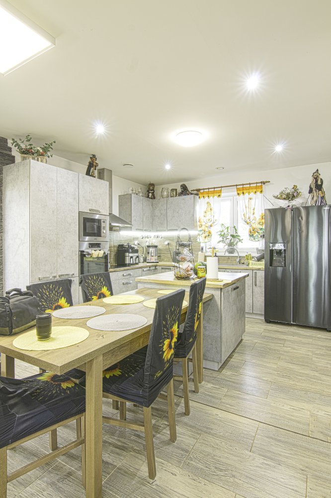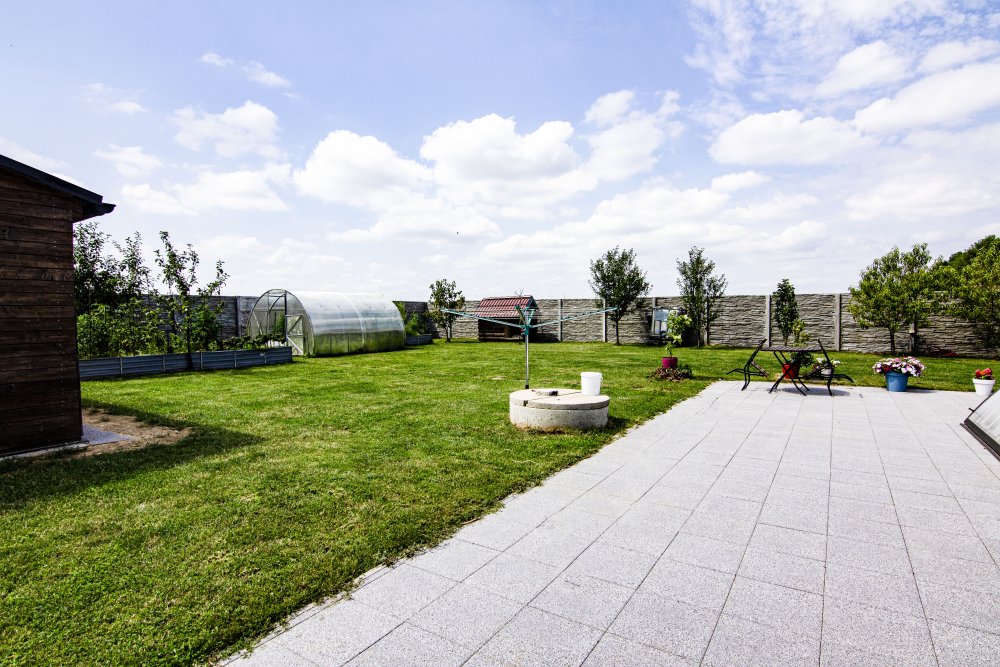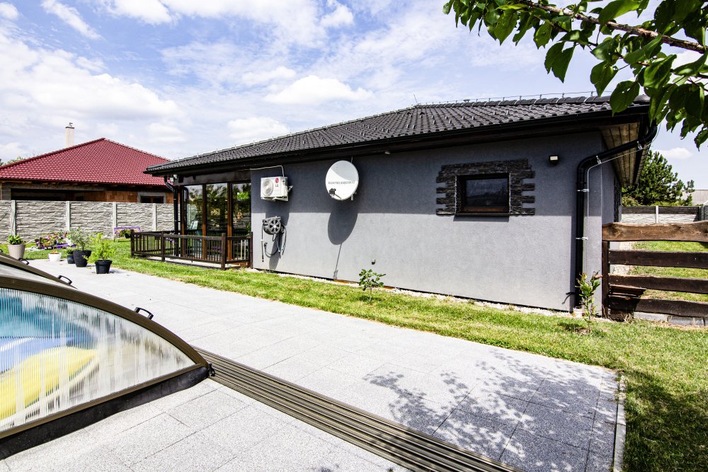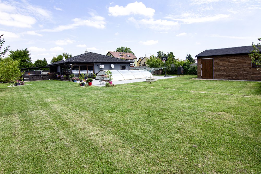 Nabízíme Vám k prodeji z cela výjimečnou nemovitost a to novostavbu rodinného domu kolaudovanou k bydlení v roce 2021. Dům o dispozici 6KK je postaven z kvalitních úsporných cihel HELUZ FAMILY 50. Díky tomuto zdivu a špičkové izolaci dosahuje PENB kategorie B. Okna jsou trojskla v dekoru zlatého dubu. Střešní krytina KM Beta. Na pozemku o celkové ploše 1.220 m2 se nachází studna s pitnou vodou, zapuštěný krytý bazén (zaizolovaný do izolační pěny) o velikosti 7 x 3,6 m, vyvýšené záhony, skleník z polykarbonátu, prostorná pergola propojena s interiérem pomocí francouzských dveří, zahradní dům, podzemní nádrž na dešťovou vodu o objemu 4 m3 + další příslušenství. Na domě je umístěn kamerový systém. Jednou z dominant je zimní zahrada, která aktuálně slouží jako relaxační pokoj. Jsou zde umístěné bezpečnostní venkovní žaluzie na dálkové ovládání. V domě se nachází klimatizace + rekuperace. Kromě dětských pokojů, ložnice, šatny, samostatného WC a kuchyně propojené s obývacím pokojem zde najdete také dvě koupelný. Díky tomu se povedlo vytvořit prostor pro opravdové soukromí, kdy jedna z koupelen a šatna jsou samostatně napojeny na ložnici.