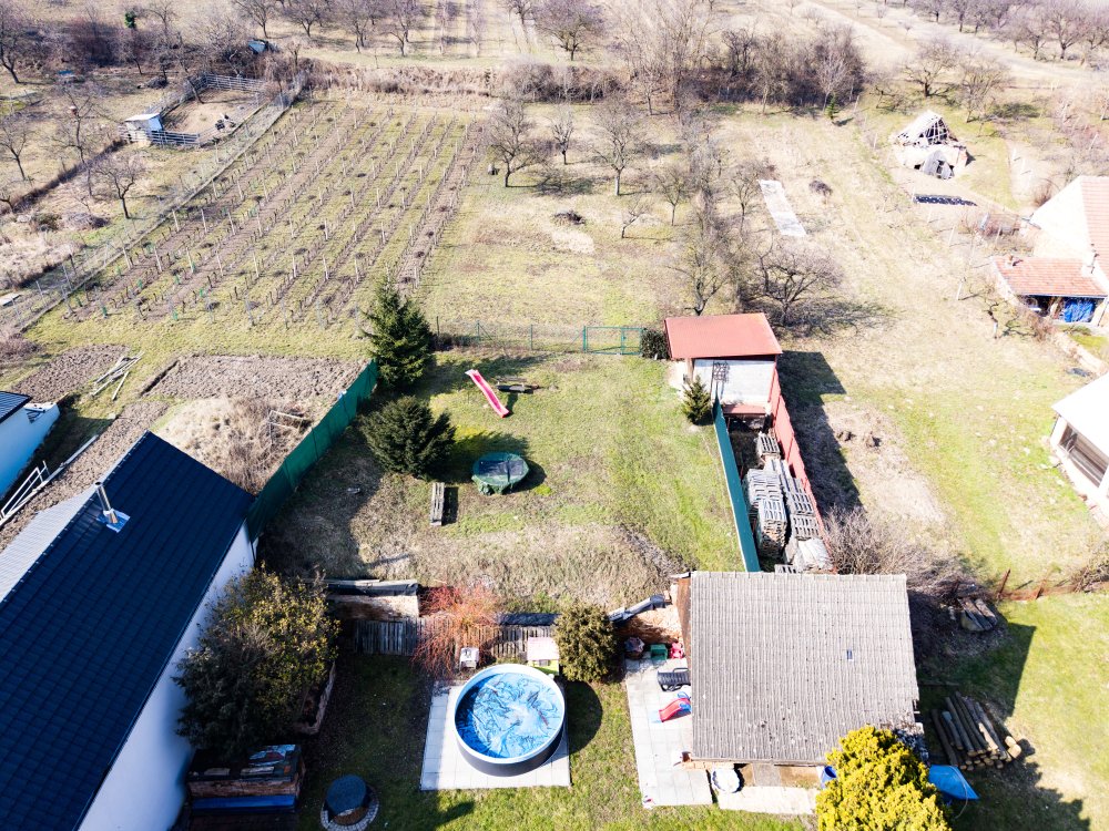 Noví majitelé ocení velký klidný dvůr s bazénem pro skvělé osvěžení v letních měsících, na který navazuje krásná zahrada s ovocnými stromy. Tato zahrada se nabízí k relaxaci nebo k pěstování všeho zdravého. Je zde cítit klid a soukromí. Dále je zde dostatek místa pro dětské hry, grilování a posezení s přáteli.