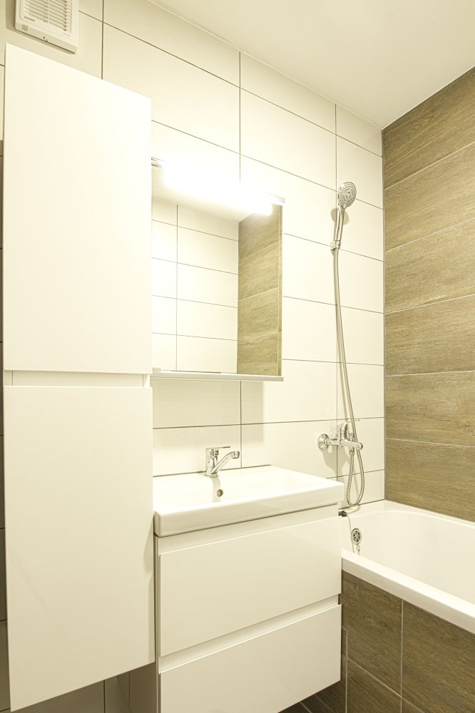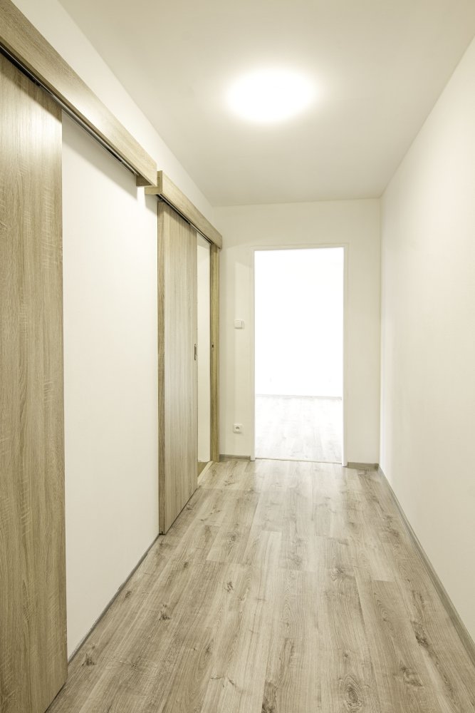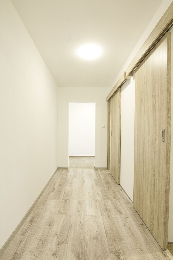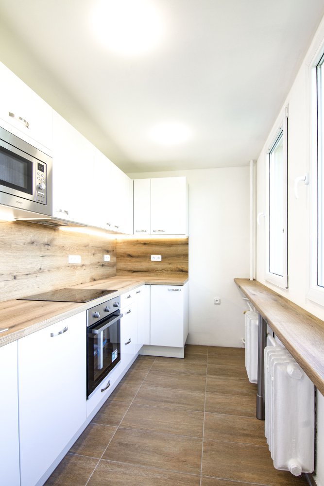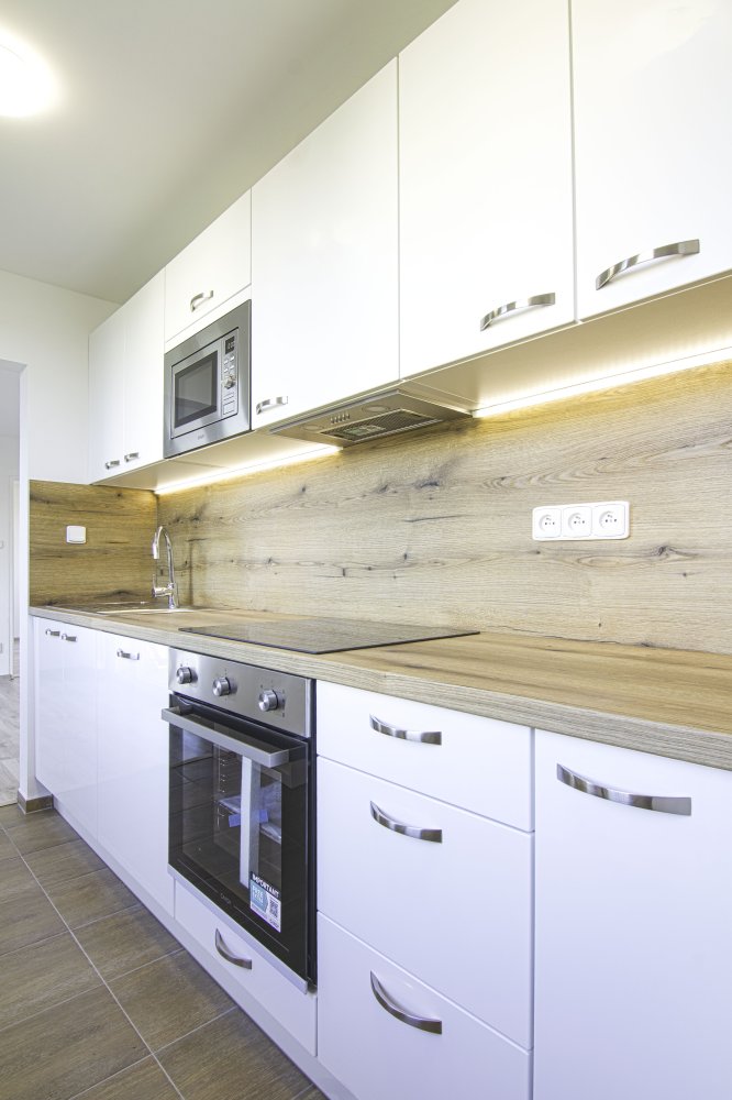 Právě nyní vám nabízíme k pronájmu krásný kompletně zrekonstruovaný byt v 5. patře panelového domu na Jiráskově ul. v Dačicích. V rámci rekonstrukce zde proběhla výměna elektrorozvodů vč. pojistek, podlahových krytin, omítek… Součásti rekonstrukce a pronájmu je také zcela nová moderní kuchyňská linka s podsvícením led pásky na dotyk, zcela nová vestavná trouba, myčka i mikrovlnná trouba. Kuchyňskou linku v bílém dekoru doplňuje pracovní deska v hnědé barvě dekoru dřeva.