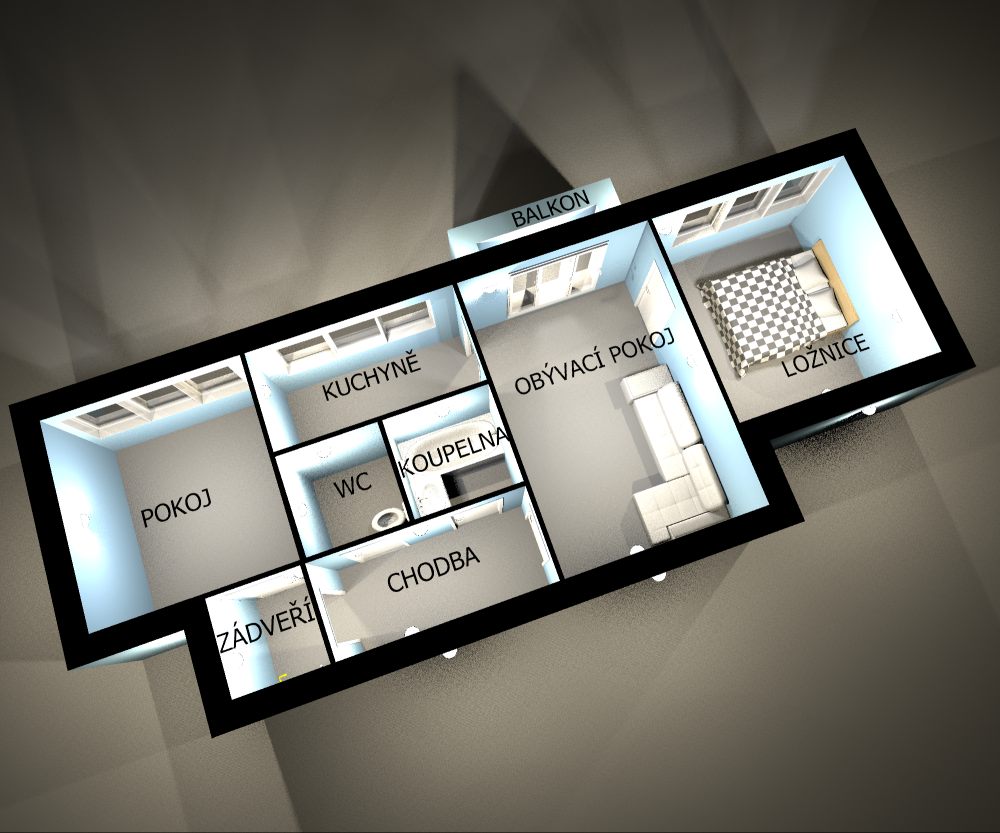 Byt je dispozičně řešený jako 3+1. Samostatné WC, kde je také prostor na umístění pračky a zvlášť velmi pěkná koupelna. Více uvidíte ve videu.