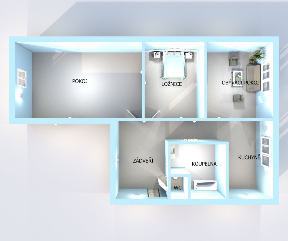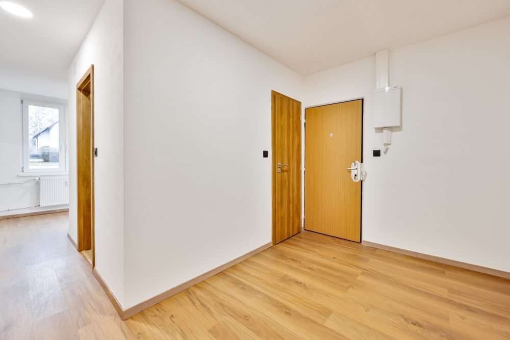Nově řešená dispozice nabízí dostatek prostoru pro pohodlný rodinný život. Obývací část s kuchyní tvoří přirozené centrum bytu, zatímco samostatné pokoje poskytují dostatek soukromí rodičům i dětem.