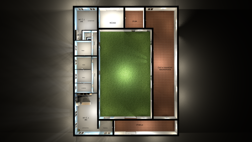 V hlavní budově najdete dvě plně zrekonstruované, samostatné bytové jednotky o dispozicích 2+kk a 3+kk, každá s vlastním vstupem a dostatkem denního světla. Oba byty jsou připraveny k okamžitému užívání – ať už jako rodinné útočiště, víkendová chalupa nebo rekreační pronájem. Francouzské dveře vedou do útulného, uzavřeného dvora, který poskytuje naprosté soukromí a prostor pro relaxaci i venkovní posezení.