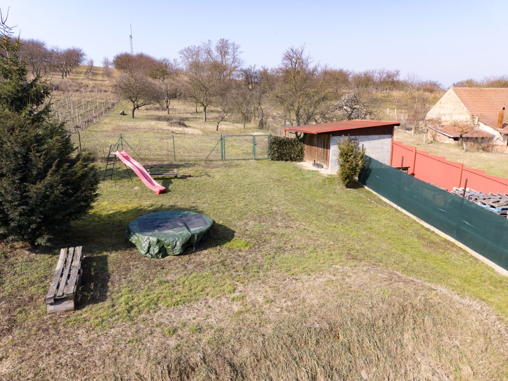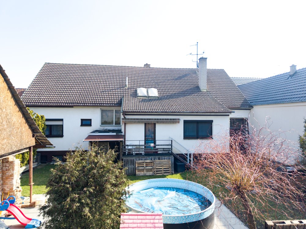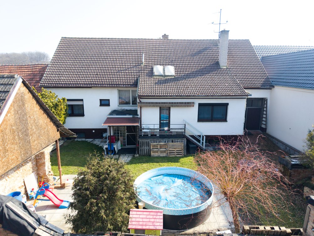 Noví majitelé ocení velký klidný dvůr s bazénem pro skvělé osvěžení v letních měsících, na který navazuje krásná zahrada s ovocnými stromy. Tato zahrada se nabízí k relaxaci nebo k pěstování všeho zdravého. Je zde cítit klid a soukromí. Dále je zde dostatek místa pro dětské hry, grilování a posezení s přáteli.