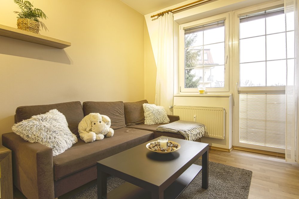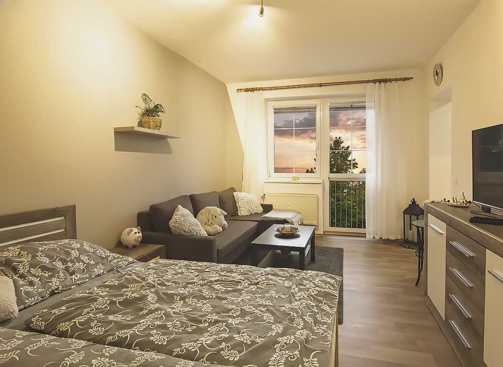 Pronájem útulného bytu 1+kk s balkonem, 37 m² – Telč, ul. U Háje 629